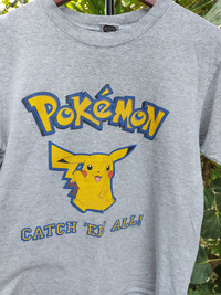 Vintage 1999 Pokemon Pikachu Catch Em All Nintendo Promo Licensed & Official Gray T-Shirt Condition : Excellent Condition / No Cracked / No Stained / No Faded / 1 Mini Pin Hole The first picture is the most accurate color. (Size. M) Tag states Size L label Measures the actual Size M Size Specifications Pit to Pit 18.5 inches Lenght 24 inches Shoulders 17.5 inches Sleeve Lenght 7 inches Hem 20 inches Tag : Pokemon Nintendo Made In Honduras Material : 90% Cotton / 10% Polyester Double-Stitch Tubular (Without Side-Seamed) Release Date : Late 90's (1999) WorldWide Shipping * PLEASE NOTE THAT SLIGHT COLOR DIFFERENCE SHOULD BE ACCEPTABLE DUT TO THE LIGHT AND SCREEN * SO MAKE SURE YOU HAVE CHECKED MANUAL MEASUREMENT BEFORE PURCHASE Thank You For Your Support