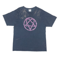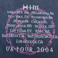 Vintage 2004 HIM Band US Tour Ville Valo Heartgram VV Double-Sided Official Licensed Short Sleeve Black T-Shirt Very Rare To Find It Is Vintage This is not new reprints - CONDITION - Used - Very Worn flaws or signs of wear, to be noted in the description and photos - FLAWS - Bleach Stain / A Lot Holes (Flaws In Picture) - Size.L - Tag states Size L label Measures the actual Size L - SIZE SPECIFICATIONS - Approximate Measurements Pit to Pit 21.5 inches Length 28.5 inches Shoulders 21 inches Sleeve Lenght 8 inches Hem 22.5 inches - DETAILS - Tag : Hanes Made In Dominican Republic Material : 100% Cotton Double-Stitch Tubular (Without Side-Seamed) Release Date : 2004 - SHIPPING - Buyers from the United States It usually takes 7-14 days for the product to reach you - PLEASE NOTE - * Differences in color should be acceptable due to the light and screen ** Please make sure you check the measurements yourself before purchase If you have any other questions please feel free to ask me Chady Shop No.C174230