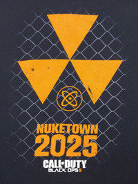 2012 Call of Duty Black Ops 2 Nuketown 2025 Video Game Promo Activision Official Licensed Short Sleeve Black T-Shirt The product images shown are taken from the actual item It is vintage This is not new reprints - CONDITION - Like new Mint condition pre-owned or new without tags - NO FLAWS - - Size.2XL - Tag states Size XXL label Measures the actual Size 2XL - SIZE SPECIFICATIONS - Approximate Measurements Pit to Pit 25.5 inches Length 30 inches Shoulders 23.5 inches Sleeve Lenght 9 inches Hem 26.5 inches - DETAILS - Tag : Call Of Duty Made In Mexico Material : 100% Cotton Double-Stitch Tubular (Without Side-Seamed) Release Date : 2012 - SHIPPING - Buyers from the United States It usually takes 7-14 days for the product to reach you - PLEASE NOTE - * Differences in color should be acceptable due to the light and screen ** Please make sure you check the measurements yourself before purchase If you have any other questions please feel free to ask me Chady Shop No.A13980