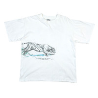 Vintage 80s Ringling Bros And Barnum & Bailey Circus White Tiger Single-Stitch Double-Sided Short Sleeve White T-Shirt Rare To Find It Is Vintage This is not new reprints - CONDITION - Used - Excellent Lightly used but no noticeable flaws - NO FLAWS - Little Stain Hard To See (Flaws In Last 2 Picture) - Size.XL - Tag states Size XL label Measures the actual Size L/XL - SIZE SPECIFICATIONS - Approximate Measurements Pit to Pit 22.5 inches Length 27 inches Shoulders 21.5 inches Sleeve Lenght 8 inches Hem 23 inches - DETAILS - Tag : Harlequin Made In USA Material : 100% Cotton Single-Stitch Tubular (Without Side-Seamed) Release Date : 1989 - SHIPPING - Buyers from the United States It usually takes 7-14 days for the product to reach you - PLEASE NOTE - * Differences in color should be acceptable due to the light and screen ** Please make sure you check the measurements yourself before purchase If you have any other questions please feel free to ask me Chady Shop No.E57150
