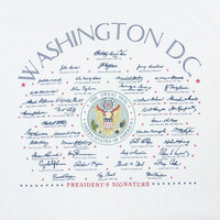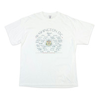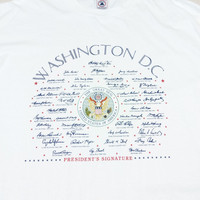 Vintage 90s Washington DC Presidents Signature Freedom Short Sleeve White T-Shirt The product images shown are taken from the actual item - CONDITION - Used - Good Minor flaws or signs of wear, to be noted in the description and photos - NO FLAWS - - Size.XL - Tag states Size XL label Measures the actual Size XL/2XL - Measurements (inches) - Pit to Pit 24.5" Length 31" Shoulders 23.5" Sleeve Lenght 8" Hem 25" - DETAILS - Tag : Delta Country of Origin: Made in U.S.A. Material : 100% Cotton Double-Stitch Tubular (Without Side-Seamed) Release Date : 90's - SHIPPING - Buyers from the United States It usually takes 7-14 days for the product to reach you - PLEASE NOTE - * Differences in color should be acceptable due to the light and screen ** Please make sure you check the measurements yourself before purchase If you have any other questions please feel free to ask me F4250