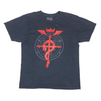 Fullmetal Alchemist Brotherhood Double-Sided Authentic Official Licensed Short Sleeve Black T-Shirt - CONDITION - Used - Good Minor flaws or signs of wear, to be noted in the description and photos - DEFECT - 2 Pin Hole / 1 Tiny Hole At Armpit (Defect In Last 2 Picture) - Size.M - Tag states Size M label Measures the actual Size M - SIZE SPECIFICATIONS - Approximate Measurements Pit to Pit 20 inches Lenght 26 inches Shoulders 18 inches Sleeve Lenght 7.5 inches Hem 20.5 inches - DETAILS - Tag : Fullmetal Alchemist Brotherhood Made In Mexico Material : 100% Cotton Double-Stitch Tubular (Without Side-Seamed) Release Date : Late - Middle 00's - SHIPPING - Buyers from the United States It usually takes 7-14 days for the product to reach you - PLEASE NOTE - * Differences in color should be acceptable due to the light and screen ** Please make sure you check the measurements yourself before purchase If you have any other questions please feel free to ask me Chady Shop No.B71