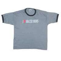 Vintage I Love Soccer Moms Thunder Creek Tag Men Short Sleeve Grey T-Shirt - CONDITION - Used - Excellent Lightly used but no noticeable flaws - FLAWS - Little Stain Hard To See / Loose Thread Right Armpit (Defect In Last 2 Picture) - Size.XL - Tag states Size L label Measures the actual Size XL/2XL - SIZE SPECIFICATIONS - Approximate Measurements Pit to Pit 25 inches Lenght 29 inches Shoulders 24 inches Sleeve Lenght 9 inches Hem 25 inches - DETAILS - Tag : Thunder Creek Material : 100% Cotton Double-Stitch Tubular (Without Side-Seamed) Release Date : Early 00's - SHIPPING - Buyers from the United States It usually takes 7-14 days for the product to reach you - PLEASE NOTE - * Differences in color should be acceptable due to the light and screen ** Please make sure you check the measurements yourself before purchase If you have any other questions please feel free to ask me Chady Shop No.C36