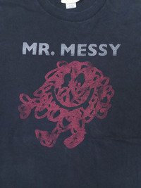 Mr. Men Little Miss 2007 Mr. Messy Authentic Official Licensed Short Sleeve Black T-Shirt - CONDITION - Used - Good Minor flaws or signs of wear, to be noted in the description and photos - FLAWS - Graphic Cracking (Defect In Picture) - Size.XL - Tag states Size XL label Measures the actual Size XL - SIZE SPECIFICATIONS - Approximate Measurements Pit to Pit 24 inches Lenght 29.5 inches Shoulders 22.5 inches Sleeve Lenght 8 inches Hem 24 inches - DETAILS - Tag : Mr. Men Little Miss Made In Mexico Material : 100% Cotton Double-Stitch Tubular (Without Side-Seamed) Release Date : 2007 - SHIPPING - Buyers from the United States It usually takes 7-14 days for the product to reach you - PLEASE NOTE - * Differences in color should be acceptable due to the light and screen ** Please make sure you check the measurements yourself before purchase If you have any other questions please feel free to ask me Chady Shop No.C32