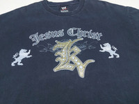 Vintage WWE 2002 Jesus Christ Logo Glitter Official Licensed Short Sleeve Black T-Shirt Very Rare To Find - CONDITION - Used - Good Minor flaws or signs of wear, to be noted in the description and photos - DEFECT - Perfect Fade - Size.XL - Tag states Size XL label Measures the actual Size L/XL - SIZE SPECIFICATIONS - Approximate Measurements Pit to Pit 23 inches Lenght 28 inches Shoulders 23 inches Sleeve Lenght 8.5 inches Hem 23.5 inches - DETAILS - Tag : WWE Made In USA Material : 100% Cotton Double-Stitch Tubular (Without Side-Seamed) Release Date : 2002 - SHIPPING - Buyers from the United States It usually takes 7-14 days for the product to reach you - PLEASE NOTE - * Differences in color should be acceptable due to the light and screen ** Please make sure you check the measurements yourself before purchase If you have any other questions please feel free to ask me Chady Shop No.B64