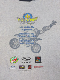 Vintage Y2K Vans Triple Crown Of Freestyle Motocross 2000 Double-Sided Licensed & Official Short Sleeve Gray T-Shirt Very Rare To Find - CONDITION - Used - Good Minor flaws, to be noted in the description and photos - DEFECT - Little Stained (Defect In 2 Last Picture) - Size.L - Tag states Size L label Measures the actual Size L/XL - SIZE SPECIFICATIONS - Approximate Measurements Pit to Pit 23 inches Lenght 29 inches - DETAILS - Tag : Ultra Club Made In El salvador Material : 90% Cotton / 10% Polyester Double-Stitch Tubular (Without Side-Seamed) Release Date : 2000 - SHIPPING - Buyers from the United States It usually takes 7-14 days for the product to reach you - PLEASE NOTE - * PLEASE NOTE THAT SLIGHT COLOR DIFFERENCE SHOULD BE ACCEPTABLE DUT TO THE LIGHT AND SCREEN ** SO MAKE SURE YOU HAVE CHECKED MANUAL MEASUREMENT BEFORE PURCHASE If you have any other questions please feel free to ask me