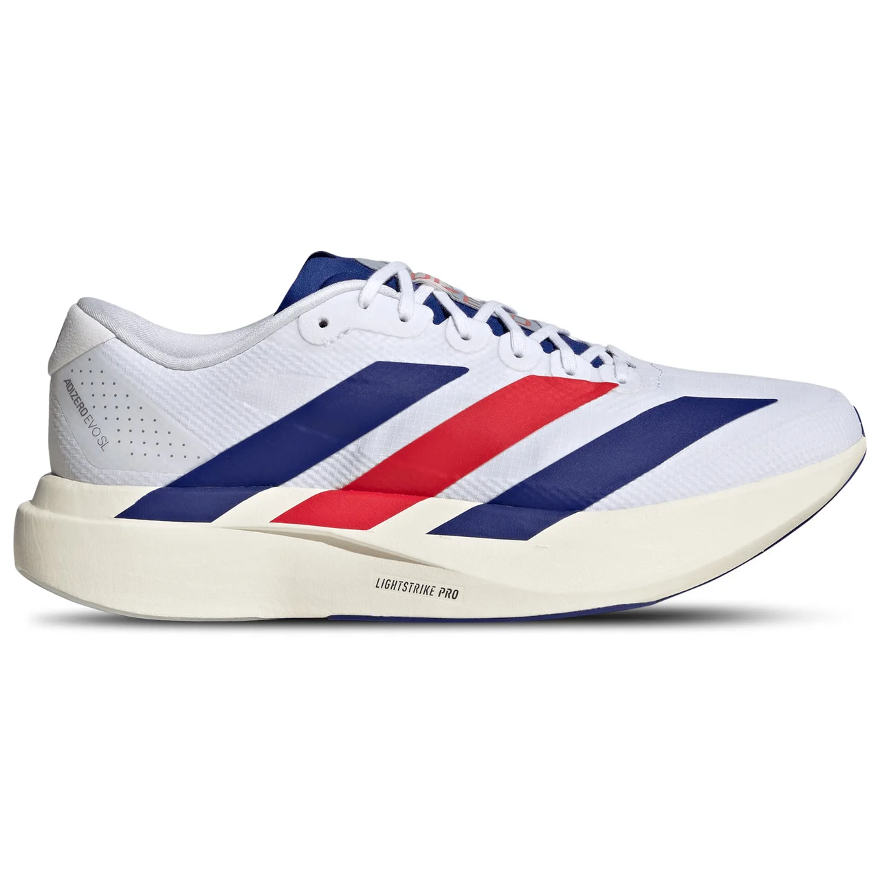 Experience unmatched speed and an energetic performance boost with the adidas adiZero Evo SL. Inspired by the record-breaking EVO 1, these shoes combine innovative technology with lightweight materials to help you push your limits in every run. The synthetic and textile upper ensures durability, breathability, and targeted support, while the Lightstrike Pro technology delivers super-light cushioning to keep you fast and agile on your feet. Constructed with at least 20% recycled content, the adidas adiZero Evo SL brings peak performance and sustainability, making every step count. adidas adiZero Evo SL features: Regular fit gives a relaxed feel. Lace closure provides a snug and customised fit. Textile lining maximises comfort. 3-Stripes add a bold, signature look. Small stiffening element ensures a little extra snap in each step. All-surface rubber outsole delivers grip and traction. *Designed to be a standard fit, not too tight or too loose.**By reusing materials that have already been created, adidas helps to reduce waste and reliance on finite resources and reduce the footprint of the products.