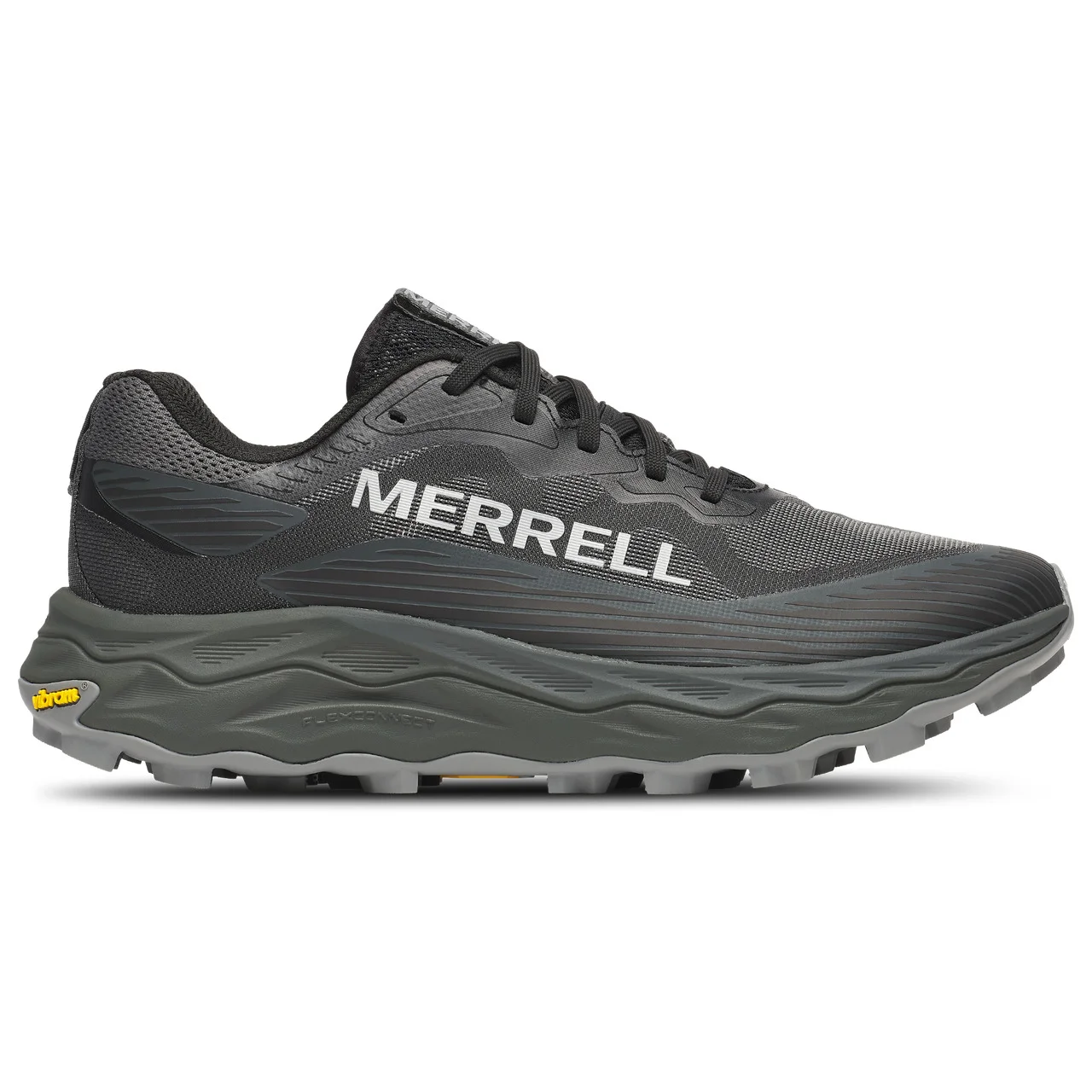 Conquer the wild with the Merrell Agility Peak 6. These high-performance trail shoes feature FloatPro foam midsoles for exceptional energy return and a Vibram Megagrip rubber outsole to handle both wet and dry terrain with ease. Experience total protection on rugged paths thanks to the impact-resistant rock plate and reinforced TPU overlays. FloatPro foam midsole offers enduring comfort and energy return Vibram Megagrip rubber outsole provides unparalleled traction Rock plate shield delivers flexible defense against sharp terrain FLEXconnect dual-directional grooves enhance ground connection Bellows tongue shields feet from trail debris and dirt Cleansport NXT treated for natural odor control Merrell logo printed on the lateral side Embossed/debossed logo on the midsoleMaterial & Care Fabric and synthetic upper; foam midsole; rubber outsoleSize and Fit True to size Lace-up closure for a secure fit Padded collar for ankle cushioning