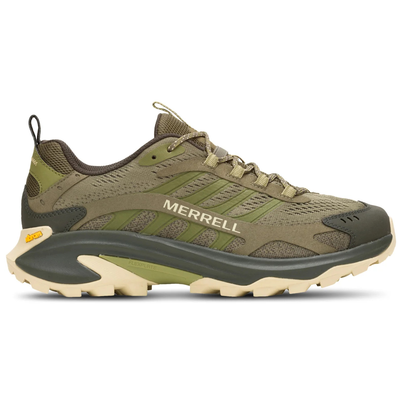 When life gets fast and adventurous, shift into high gear with the Merrell Moab Speed 2. Designed to help you hike with top-notch comfort, these eco-conscious silhouettes feature the ultra-responsive FloatPro Foam midsole and a grippy Vibram TC5+ outsole to keep you exploring with confidence. Updated with a 30% increase in foam in the underfoot, these workhorses feature the Cleansport NXT that makes sure your feet stay fresh for those limitless miles. Handle the off-road path with an abundance of rugged traction and cushioned responsiveness with the Merrell Moab Speed 2. Merrell Moab Speed 2 features: Recycled laces and webbing deliver a secure fit. 39% recycled, breathable engineered mesh and TPU upper protects against the elements. Padded collar adds comfort. Bellows tongue keeps out debris. Synthetic heel and toe cap offer protection and abrasion resistance. Dual heel and tongue loops allow ease of entry as well as carabiner compatibility. 100% recycled breathable mesh lining offers a soft touch. 100% recycled mesh footbed cover adds breathability. Cleansport NXT treatment ensures natural odour control. Lightweight FlexPlate technology provides torsional rigidity with forefoot stability. 5% recycled removable PU footbed improves underfoot comfort. Secure fit heel counter and a full-length rock plate add stability. Vibram traction lugs increase traction and shed debris with each step.
