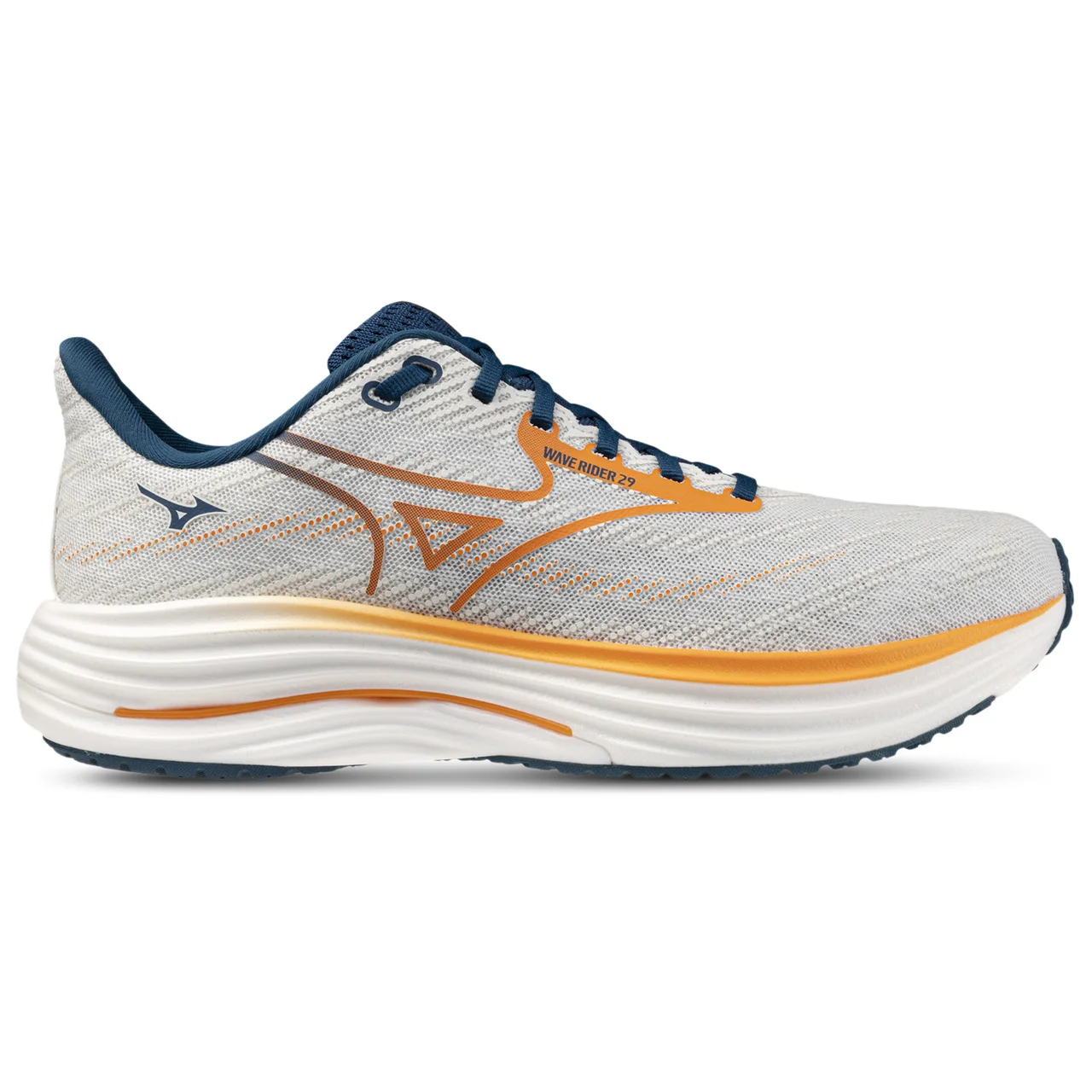 Embrace the feeling of effortless stride with the Mizuno Wave Rider 29. Perfect for your next marathon, these versatile shoes feature the Mizuno Wave plate, which disperses energy from impact into a broader area to provide stability and cushioning. Designed to maximize energy return, these shoes enhance your efficiency and keep you moving with the next generation of Mizuno Enerzy midsole material. The legendary MIZUNO WAVE structure delivers a ride that feels both familiar and revolutionary, while eco-friendly recycled materials prove that peak performance and planet-friendly choices can stride side by side. Durable and supportive, the Mizuno Wave Rider 29 makes sure you're always ready to go the extra mile. Mizuno Wave Rider 29 features: Jacquard mesh upper provides breathability. Innovative gusseted tongue hugs the foot securely and comfortably. Strategic placement of carbon rubber maximizes durability in high-wear areas and enhances responsiveness. X10 outsole with carbon rubber delivers durability. Heel-to-toe drop: 10 mm. Weight: 8 oz.