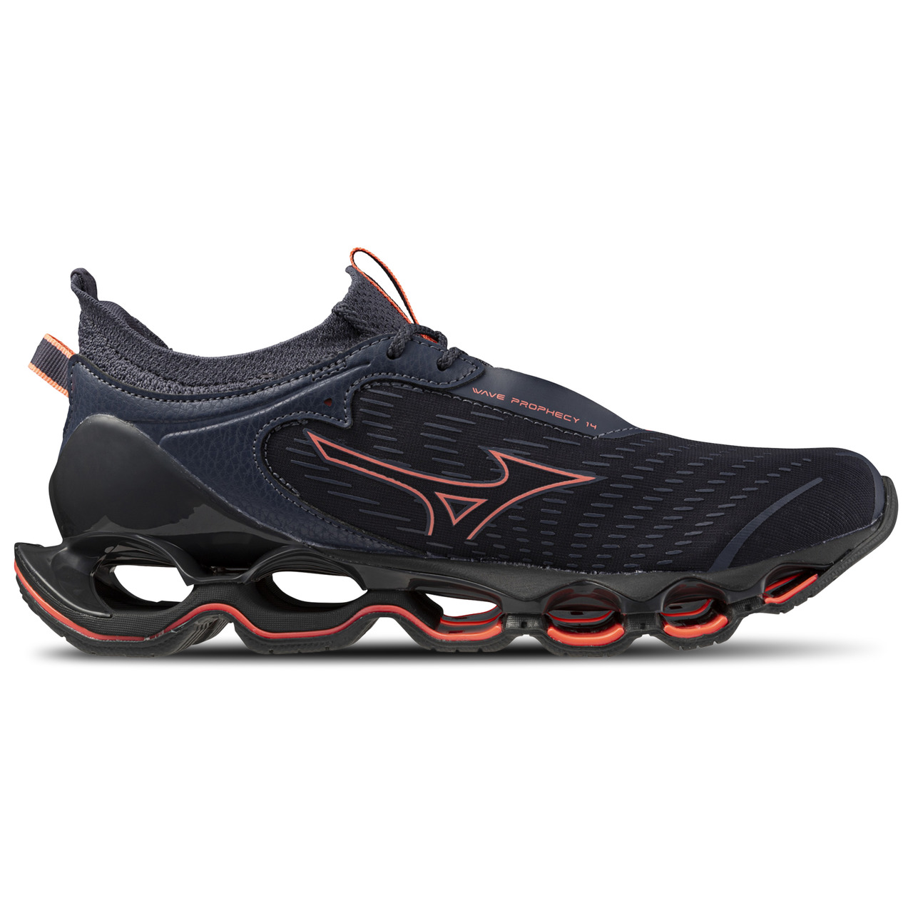 Ride the revolution! Break free from the ordinary and power your runs with the Mizuno Prophecy 14. Engineered with the Infinity Wave Plate—the next generation of Wave technology—these shoes showcase a bold, more visible construction that maximizes performance, cushioning, and comfort like never before. The unrivaled cushioning and enhanced durability effortlessly absorb shock to keep you going through every stride. These silhouettes also bring the Mizuno Wave plate into the design to disperse impact energy across a wider surface, delivering unmatched stability and a smooth, responsive ride. Conquer every mile, every trail, and every challenge in style with the Mizuno Prophecy 14. Mizuno Prophecy 14 features: Sustainable construction ensures a clear conscience. Layered monofilament mesh and synthetic leather upper provides durability and an airy fit. U4ic midsole delivers optimal shock reduction, durability, and a superior ride. U4icX Strobel Lasting Board ensures a comfortable underfoot feel. X10 durable carbon rubber outsole offers traction and durability. WGRIP outsole provides excellent durability and grip in wet and dry conditions. Category: Neutral. Drop: 10 mm. Stack height: Forefoot 28 mm/Heel 38 mm. Weight: 11.3 oz.