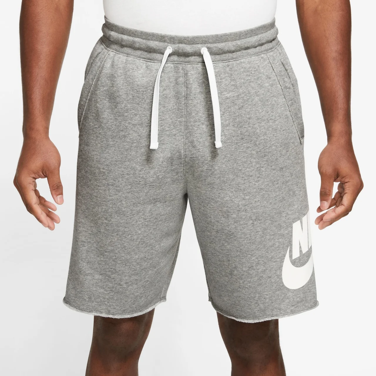 Prioritize your comfort with the Nike Club Alumni Shorts. Designed with exposed raw edges on the pocket openings and hem, these French terry shorts fit and feel like a well-worn vintage pair. A stretchy elastic waistband with an external drawcord helps you find the right fit. Outrageously soft, lightweight, and tailored for a distanced hang – the Nike Club Alumni Shorts let you cruise through the campus or relive the glory days in sporty style. Nike Club Alumni Shorts features: French terry fabric delivers a soft and lightweight feel. Roomy fit through the hips and thighs offers a laid-back look and feel. Back and hand pockets provide storage for phones, keys, and other small items. Printed Futura logo on the left thigh gives a premium finish. Machine wash. Body: 58% cotton/23% rayon/19% polyester; Front Pocket Knuckle Side: 100% cotton. Waistband: 49% rayon/47% cotton/4% spandex. Imported.