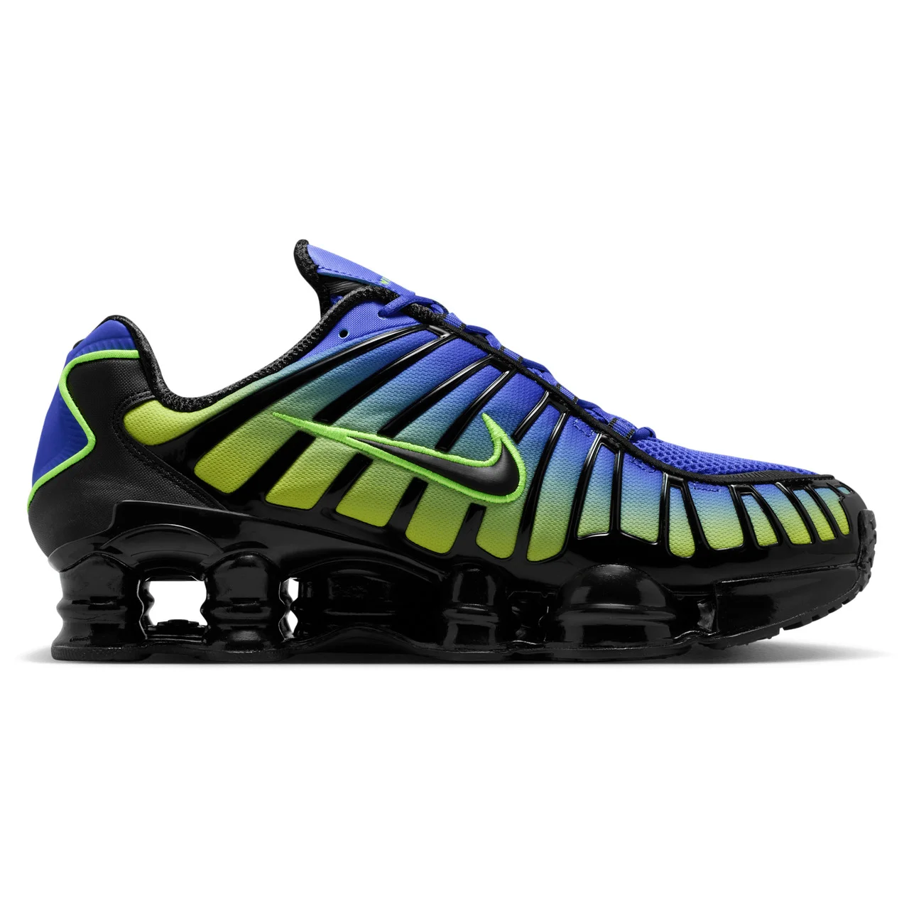 Take mechanical cushioning to the next level with the Nike Shox TL. This recrafted version of the 2003 icon features a breathable mesh upper and full-length Nike Shox tech for optimal impact absorption and a bold look. Nike Shox combines resilient, flexible columns with moderator plates for outstanding cushioning. Combination upper with a full TPU cage is a near-exact replica of the 2003 Nike Shox TL.Molded overlays throughout the midfoot provide support and a snug fit.TPU plate in the heel between the midsole and Nike Shox offers lateral stability and support.Foam midsole provides lightweight cushioning.Non-marking, solid rubber in a modified waffle outsole gives great traction and durability.Synthetic and textile upper.