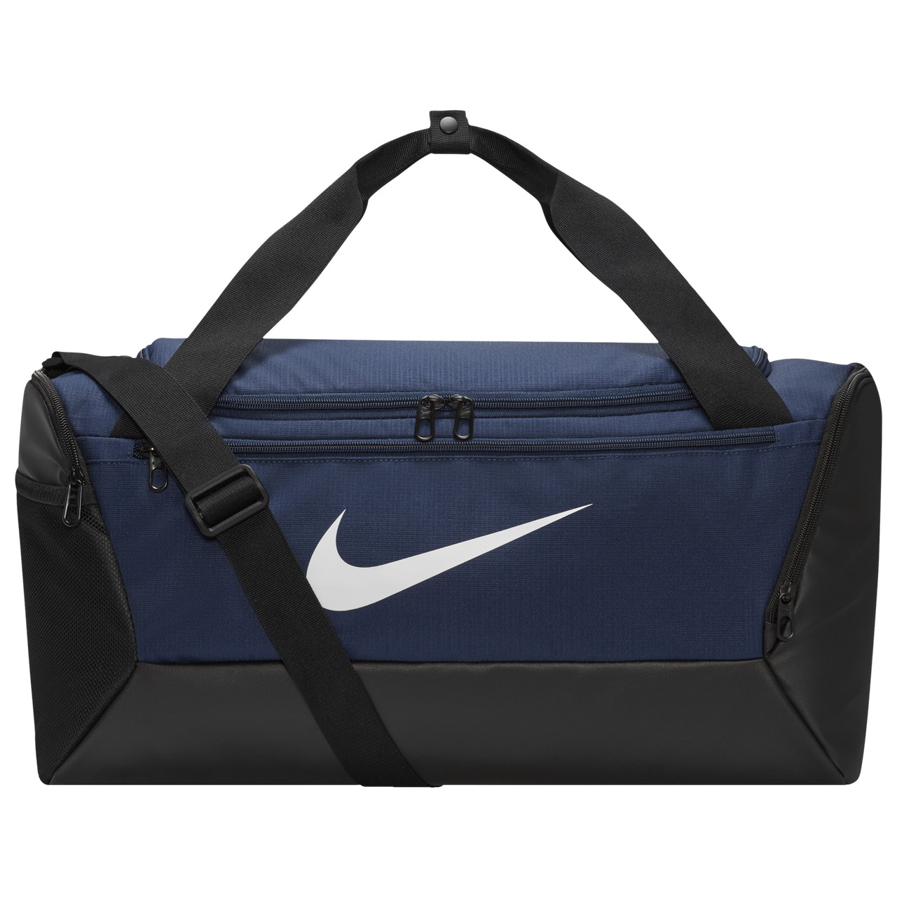 Dump everything you need in the Nike Brasilia Small 9.5 Duffle Bag and get going. Designed with a side compartment that stores belongings separately, this bag helps you stay organized. Its zippered main compartment secures training essentials, while the inner compartment can store dirty and sweaty gear. The coated bottom helps shield your things from bumps, scrapes, and spills, and the outer pockets keep must-haves within reach. Detachable shoulder strap lets you adjust the fit. Dimensions: 20'' L x 11'' W x 11'' H. 100% polyester. Imported.