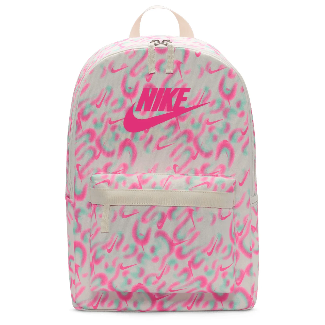 Add a splash of personality to your carry game with the Nike Heritage Airbrush Backpack. Made with densely woven polyester, this backpack offers strong, reliable support, perfect for handling the daily grind and keeping your style expressive. The main compartment gives you plenty of space for all your essentials, while the handy side pocket keeps your water bottle right where you need it. Turn heads and carry confidence with the Nike Heritage Airbrush Backpack. Nike Heritage Airbrush Backpack features: Internal laptop sleeve holds up to a 15 laptop. Padded shoulder straps offer an adjustable, comfortable fit. Zippered front pocket provides space to stow tiny essentials. Dimensions: 17 H x 12 W x 6 D. 100% polyester.