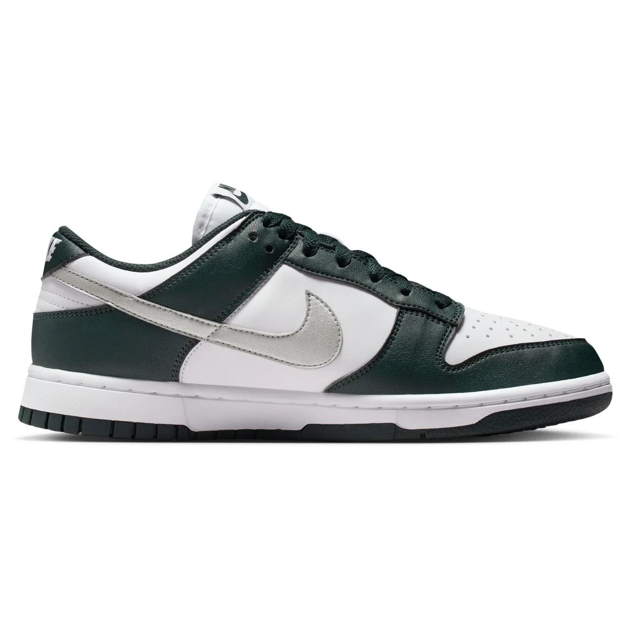 Bring back vintage vibes with the Nike Dunk Low. Featuring a crisp leather upper with a slight sheen, these sneakers offer a durable fit with heritage style. The foam midsole provides lightweight and responsive cushioning, while the padded, low-cut collar adds a sleek look to your everyday style. The bold colorblocking and iconic hoop design on the Nike Dunk Low give a throwback feel. Rubber outsole with classic hoops adds durability and traction. Low-cut collar elevates your comfort with heritage style.