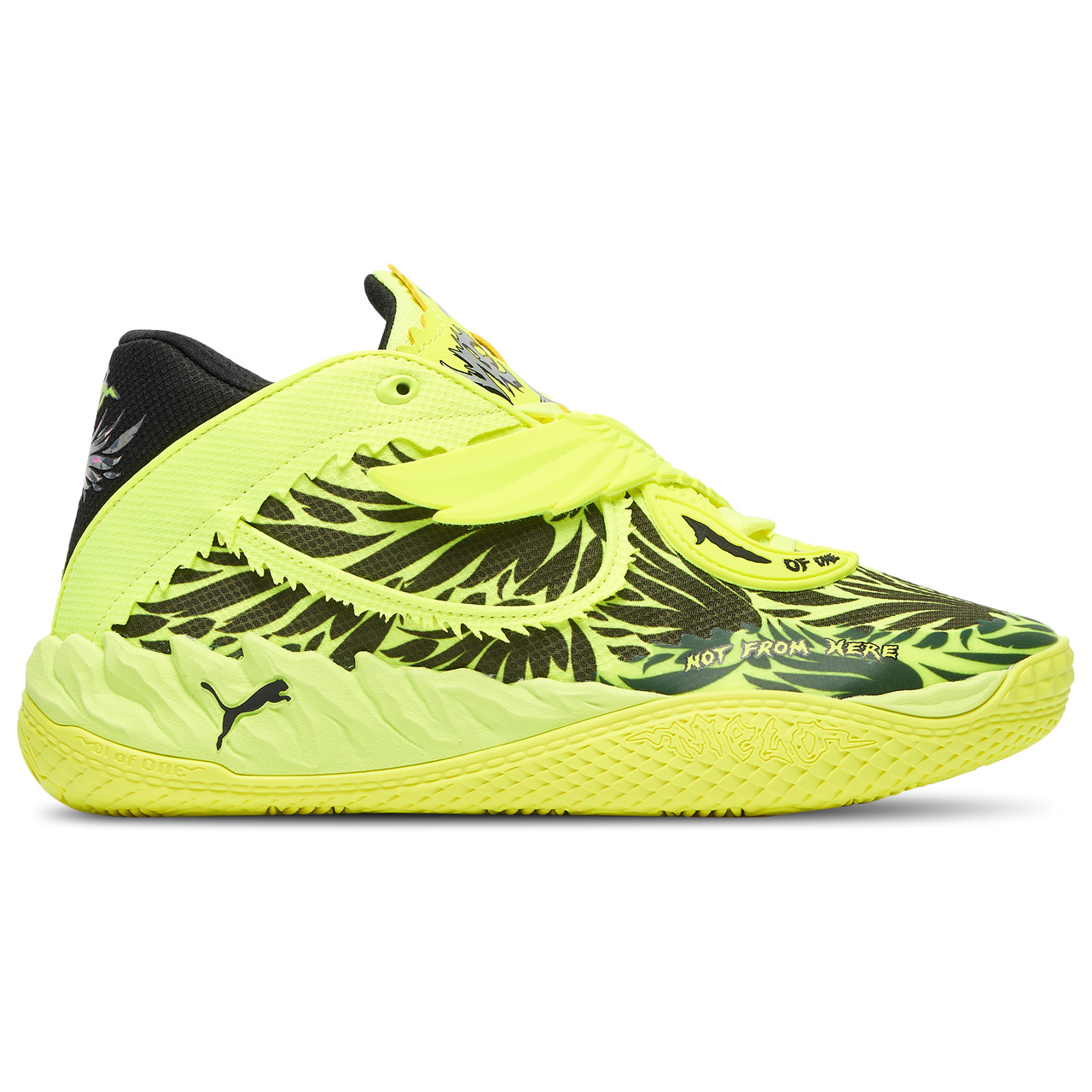 Get ready to strap in and take off. The PUMA MB.05 Voltage powers up your game with high-voltage energy in every cut, sprint, and slam. Featuring a new molded forefoot strap for enhanced lockdown and control, these fifth signature sneakers showcase bold material executions and signature LaMelo's storytelling details that bring personality to every play. The iconic MB1 Wings logo popping against the electrifying Volt base adds a visual edge that's unmistakably Melo. From the hardwood to the streets, the PUMA MB.05 Voltage lights up your look with fearless energy and standout style. 100% textile upper offers lightweight breathability and flexibility. 100% rubber outsole delivers durable traction and grip.