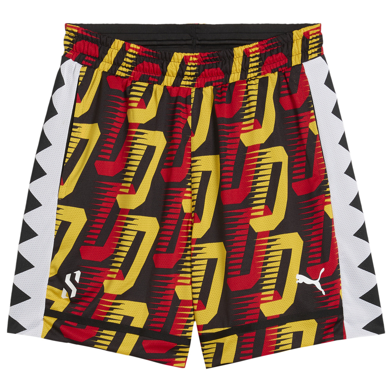 Get game-ready with the PUMA Scoot Trail AOP All Jaws Short. Built for the hardwood heroes, these medium-rise shorts help you conquer the court and feature the Scoot Henderson branding for that extra edge. The breathable knit fabric and dryCELL performance technology ensure you stay cool and sweat-free, even as the clock winds down. Designed in a relaxed fit, the PUMA Scoot Trail AOP All Jaws Short lets you be the champion who leaves it all on the court. PUMA branding details add authenticity. Shell/Lining/Pocket bag: 100% polyester, 135 GSM. Imported. *Do not iron accessories/trims. Do not iron print. Wash and iron inside out. Wash with similar colors. Use only mild detergent. Exclusive of Decoration.