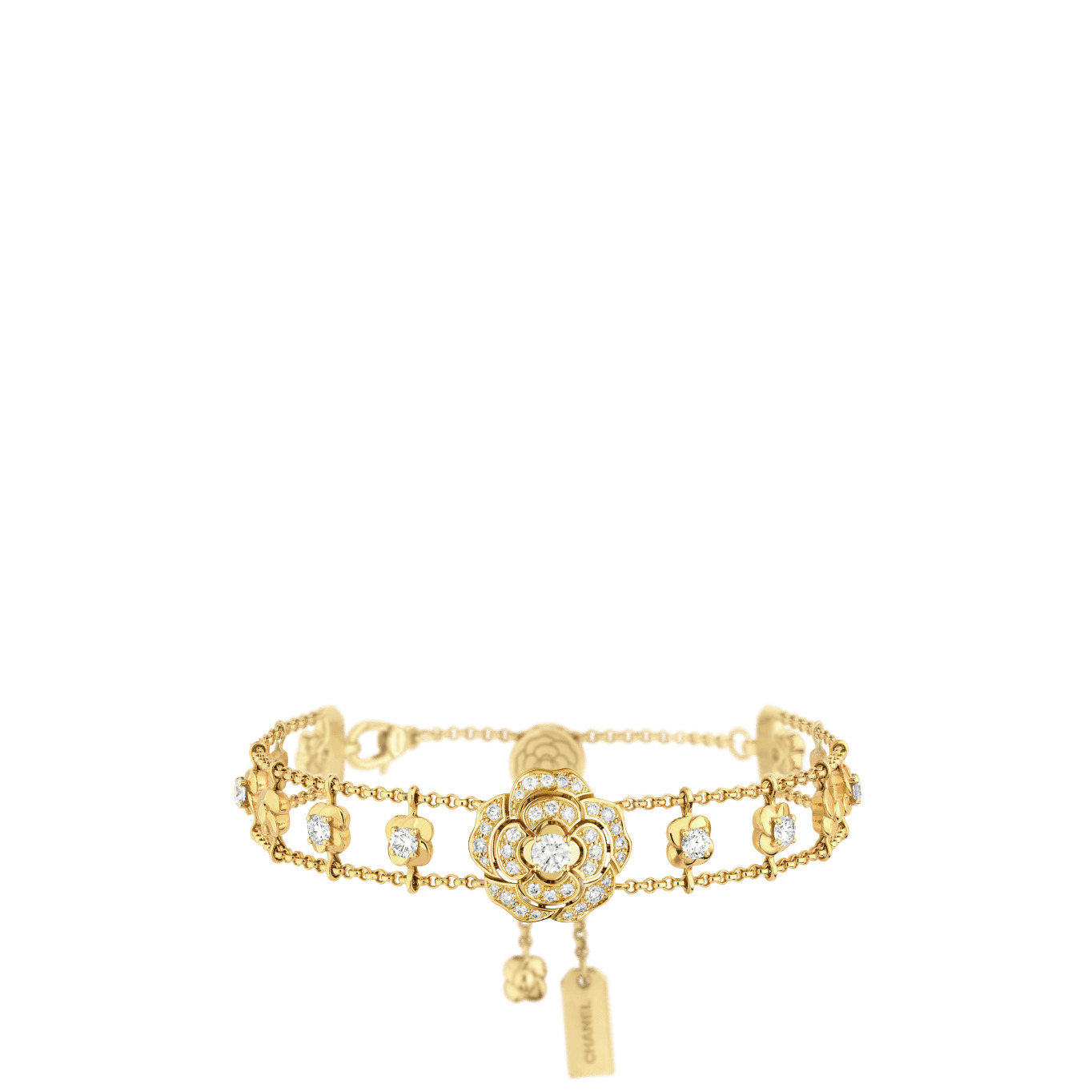 Bouton de Camelia supple bracelet, 18K yellow gold, diamonds on the CHANEL website. 18K yellow gold, diamonds
