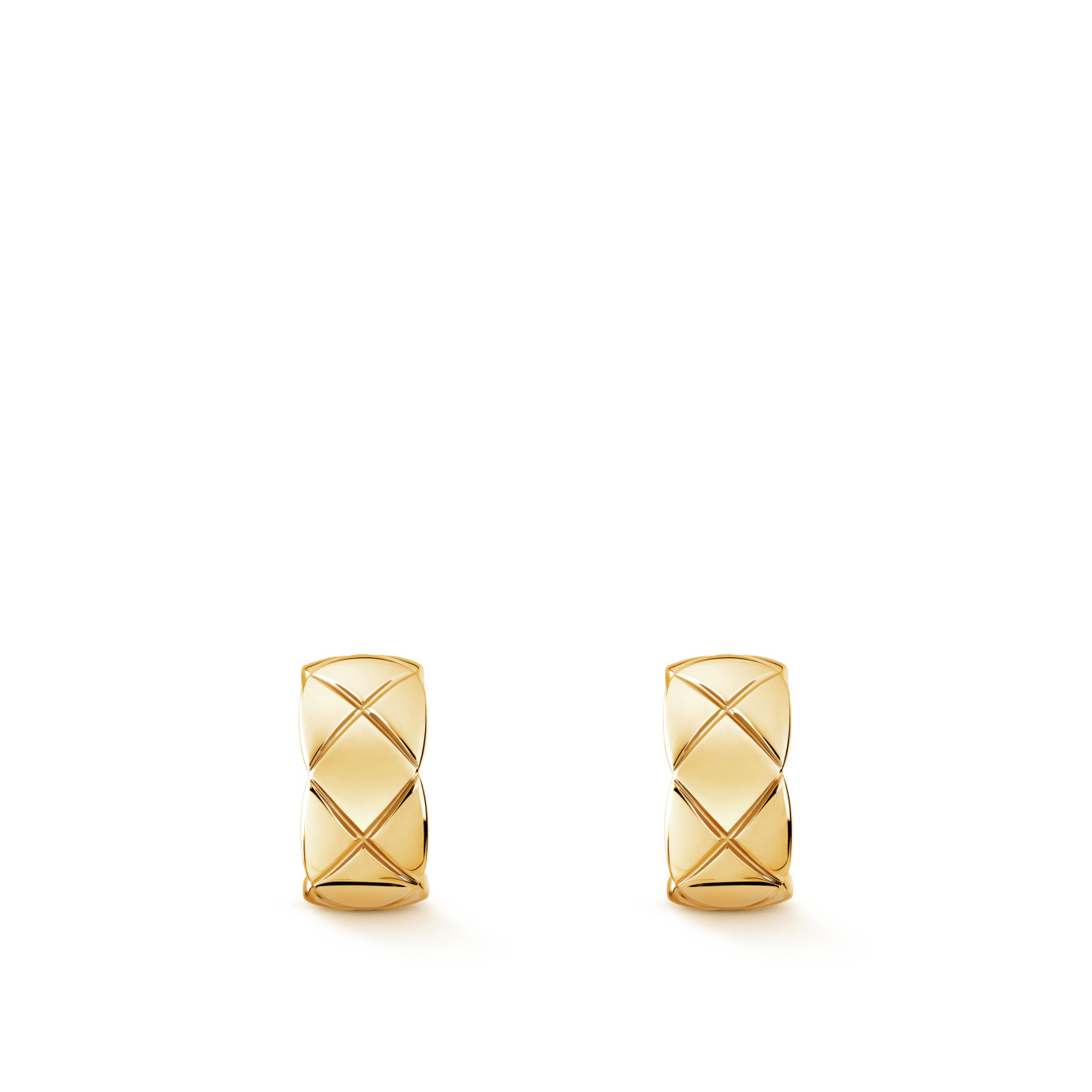 Coco Crush earrings, Quilted motif, 18K yellow gold on the CHANEL website. Quilted motif, 18K yellow gold