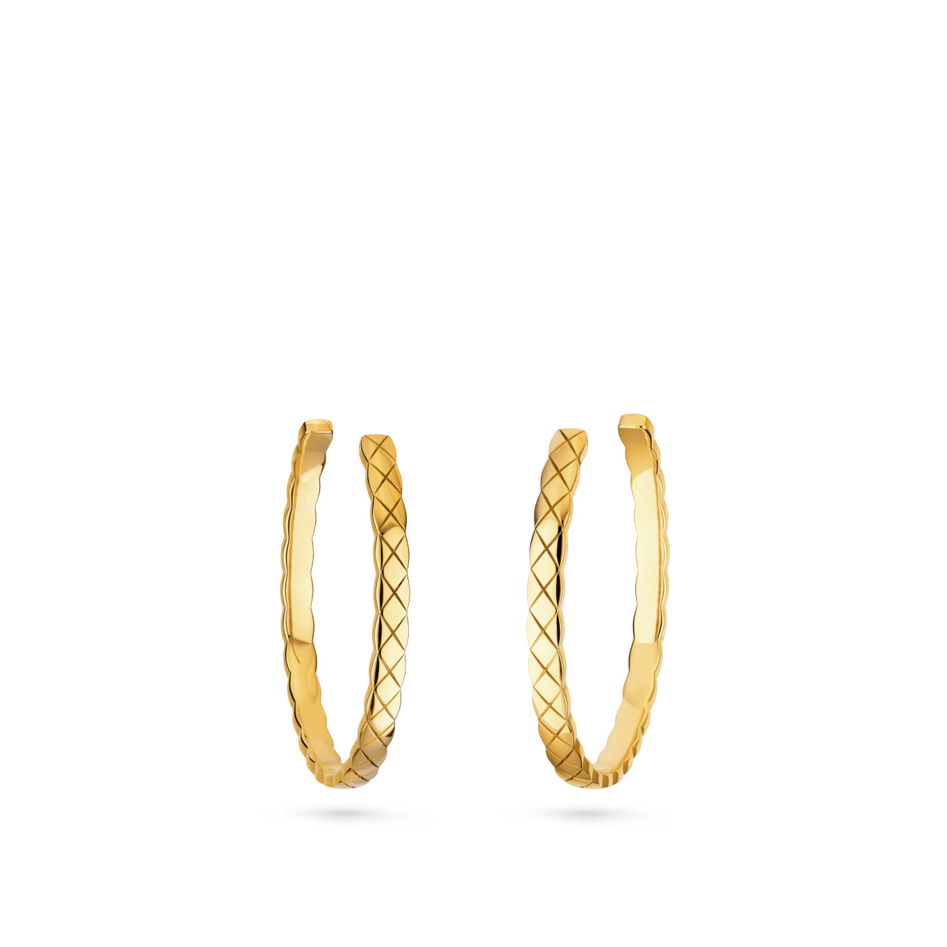 Coco Crush hoop earrings, Quilted motif, 18K yellow gold on the CHANEL website. Quilted motif, 18K yellow gold