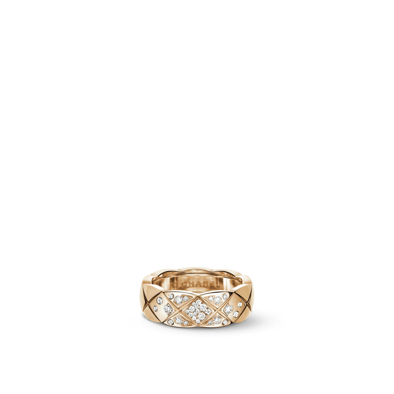 Coco Crush ring, Quilted motif, small version, 18K BEIGE GOLD, diamonds on the CHANEL website. Quilted motif, small version, 18K BEIGE GOLD, diamonds