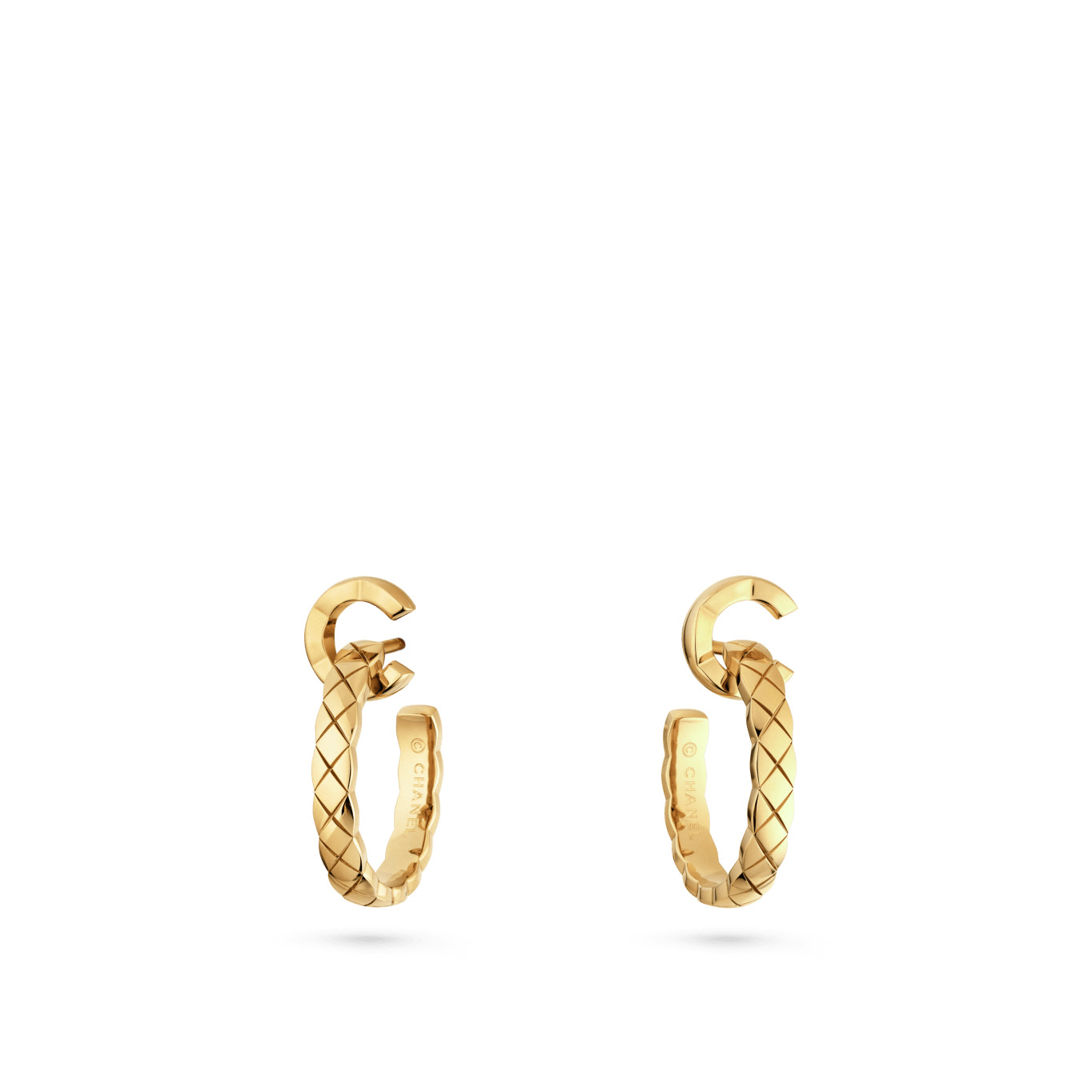 COCO hoop earrings, Quilted motif, 18K yellow gold on the CHANEL website. Quilted motif, 18K yellow gold
