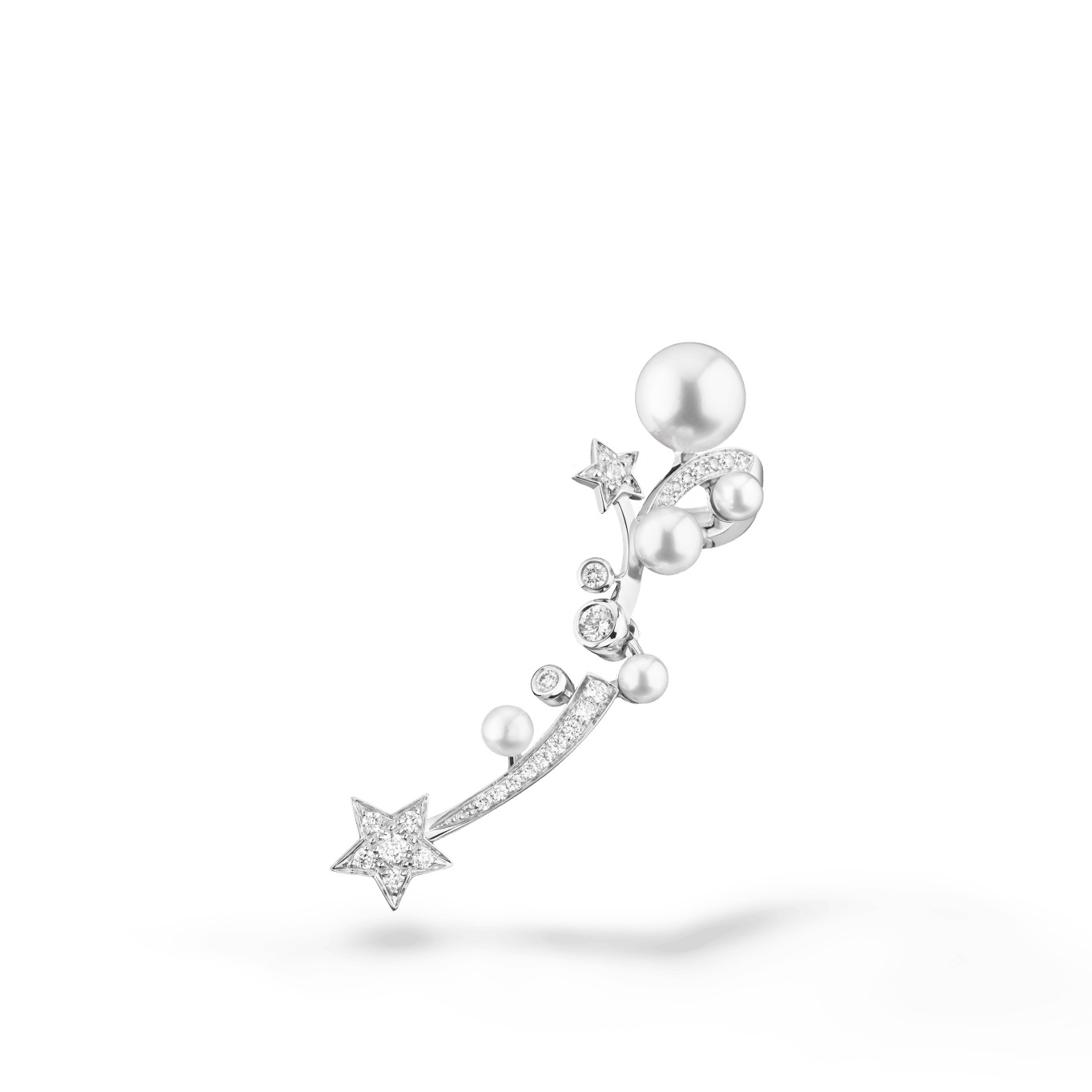 Comète Perlée ear cuff, 18K white gold, diamonds, cultured pearls on the CHANEL website. 18K white gold, diamonds, cultured pearls