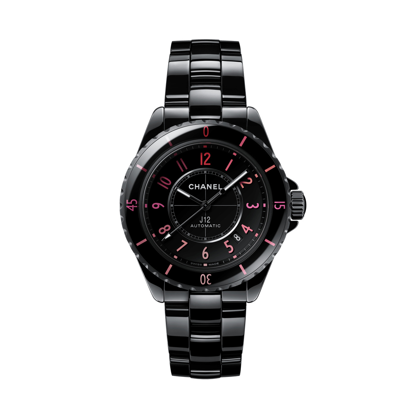 J12 BLUSH WATCH CALIBER 12.1, 38 MM, Black highly resistant ceramic and matte black-coated steel on the CHANEL website. Black highly resistant ceramic and matte black-coated steel