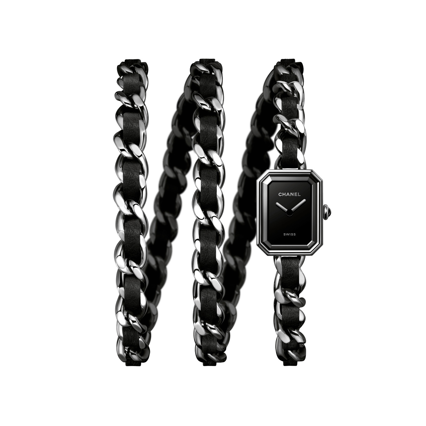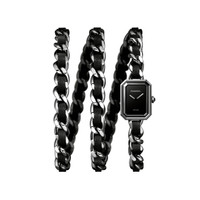 Première Iconic Chain Watch, Steel and black leather, black-lacquered dial on the CHANEL website. Steel and black leather, black-lacquered dial