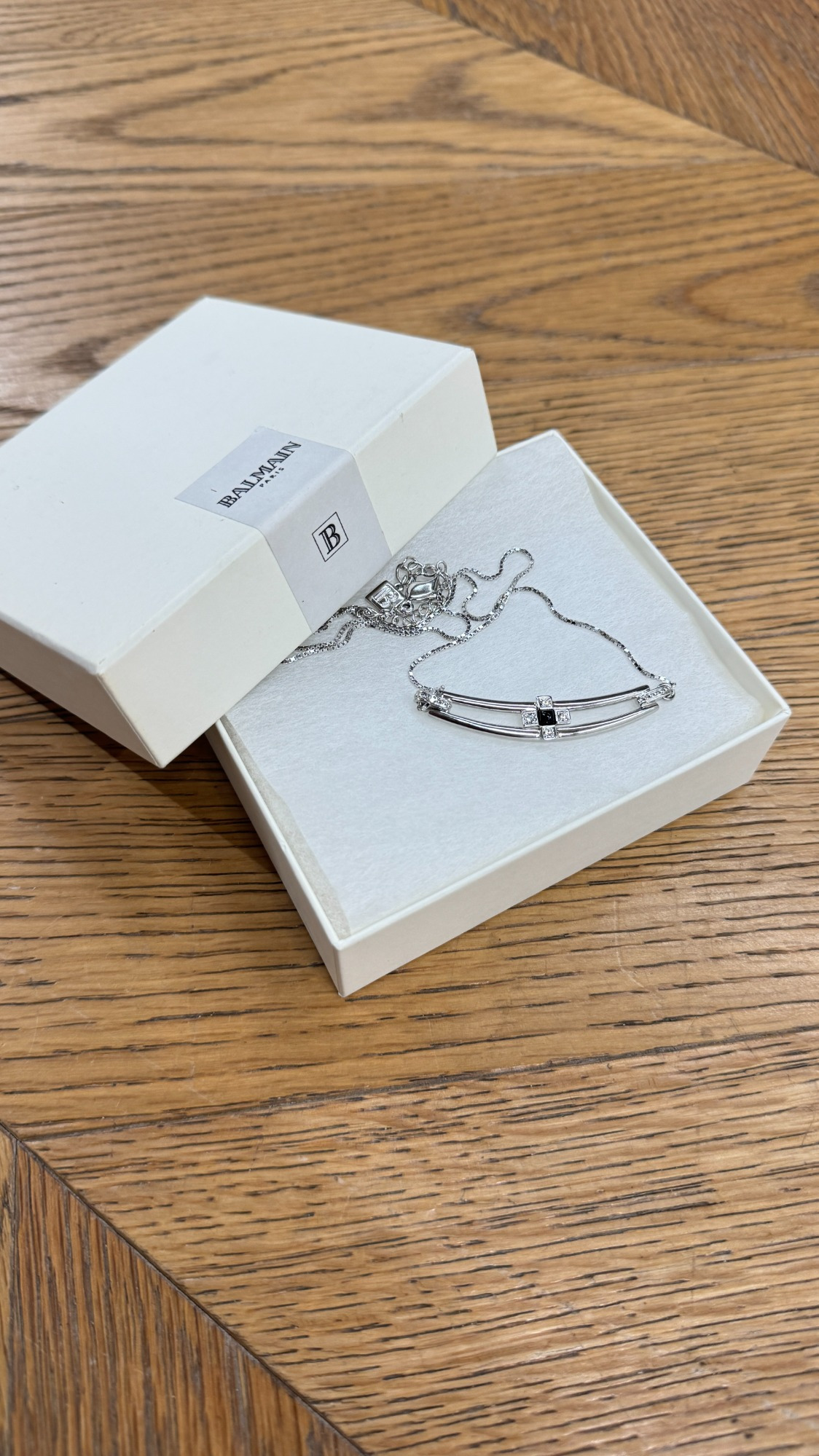 펜던트 가로 : 4cm / 펜던트 세로 : 0.5cm / 총 길이 40cm 원본보기 Balmain Necklace 1.고급스럽게 활용 해 보세요 ! 2.오염 및 결함 없는 우수한 컨디션의 제품 입니다.