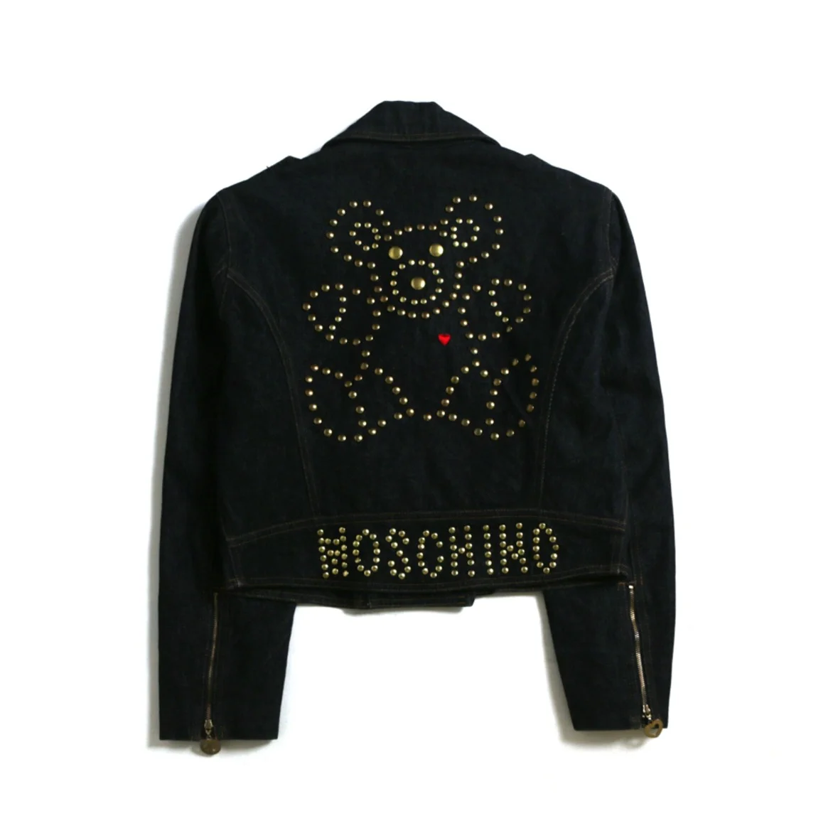 어깨 : 42cm 가슴 : 48cm 팔길이 : 57cm 총장 : 54cm ( 여성 S ~ M 정도의 사이즈 ) 원본보기 Moschino Bear Stdus Denim Rider Jacket 1.Denim Fabric 2.오염 및 결함 없는 우수한 컨디션의 제품 입니다. 3.위트있는 스터드 디테일로 포인트를 준 제품 입니다. 크롭한 기장감의 제품으로 포인트 용도로 활용 해 보세요 !
