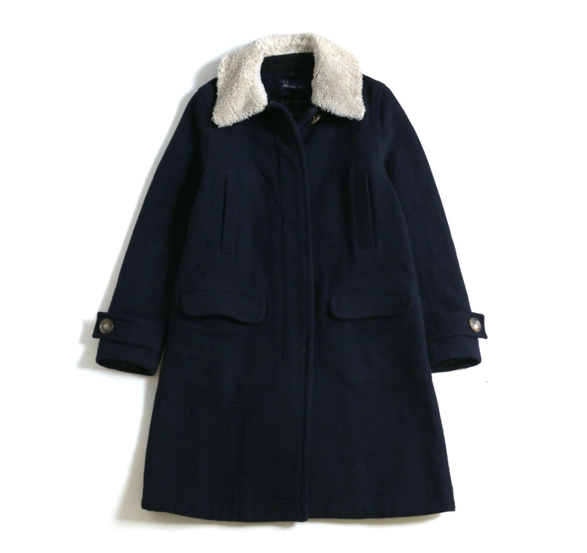 어깨 : 38cm 가슴 : 44cm 팔길이 : 60cm 총장 : 93cm ( 여성 M 정도의 사이즈 ) 원본보기 Fred Perry Wool Coat 1.Wool Fabric. 2.넥라인에 Fleece 디테일로 포인트를 준 제품이에요 부담스럽지 않아 데일리로 가볍게 활용 해 보세요 ! 3.오염 및 결함 없는 우수한 컨디션의 제품 입니다.