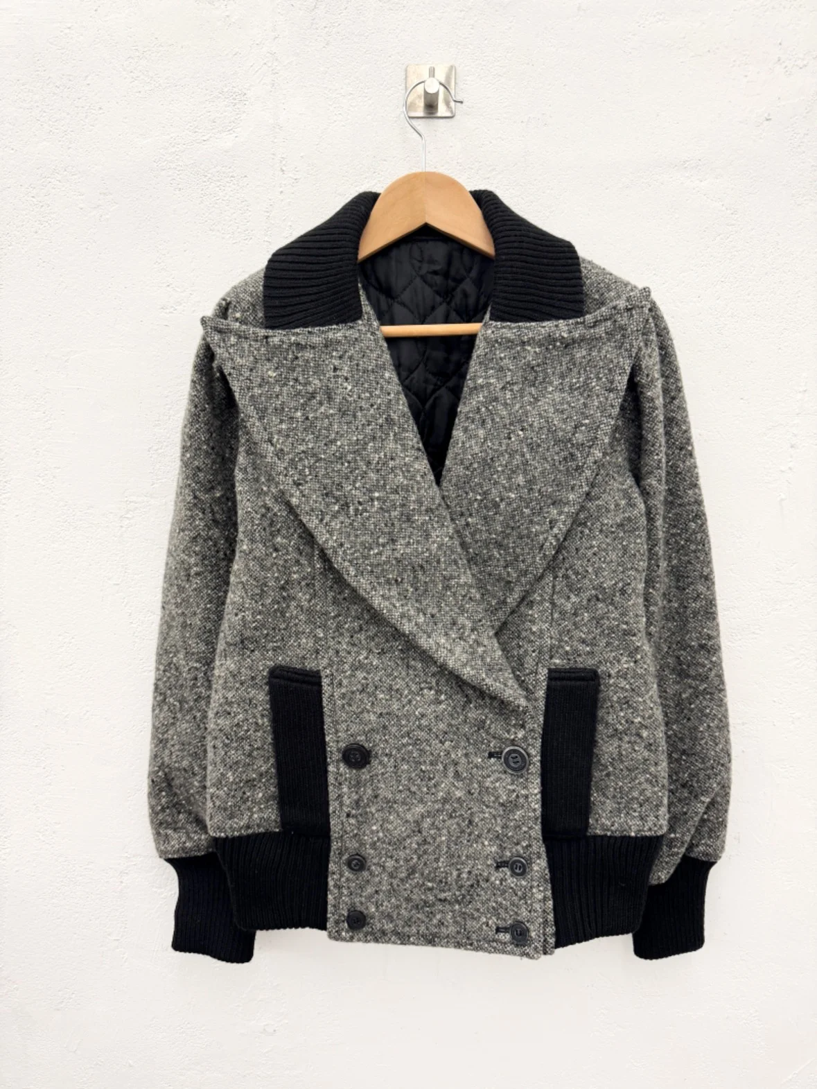 어깨 : 38cm 가슴 : 46cm 팔길이 : 63cm 총장 : 68cm ( 여성 M 정도의 사이즈 ) 원본보기 Hysteric Glamour Wool Tweed Jacket 1.Wool Fabric. 2.오염 및 결함 없는 우수한 컨디션의 제품 입니다. 3. 깔끔한 무드의 제품으로 후드나 셔츠등 다양하게 레이어드하여 활용하기 좋은 제품 입니다. ( 내부 충전재도 얇은 솜으로 되어있어 보온이 용이한 제품 입니다. )