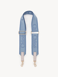 DESCRIPTION Crafted from canvas, this adjustable strap redesigns the Maison's signature accessory in a version with an adjustable length. It features Chloe logo embroidery and a metallic hook at each end, which attaches to the Maison's bags and mini bags for shoulder or cross-body wear. This statement strap is compatible with many Chloe bags, including all small and medium Marcie double carry bags, the Marcie clutch, as well as the Penelope bags. PRODUCT DETAILS Adjustable strap in canvas with Chloe logo embroidery Main material: Polyester Main lining: Polyester Carry: Shoulder & cross-body - Adjustable strap - Metallic hooks - Attached to bags or mini bags - Min. length including hooks: 30.7" (78 cm) - Max. length including hooks: 48" (122 cm) This strap is made from a woven fabrication adapted to leather goods requirements. A water-repellent treatment was applied to the fabric, but rain exposure should be avoided. Avoid rubbing this material against color-contrasting materials and shield it from humidity, light, heat, liquids and greasy substances. Follow all care instructions on the insert. Color: Washed Blue Item code: CHC24SK892L504E2 CARE INSTRUCTIONS To preserve the integrity of your garment, please refrain from washing, entrusting its care to professional cleaning services for optimal maintenance. TRACEABILITY Better traceability is central to improving our materials as well as social and environmental practices. Finishing: Turkiye Tanning: Turkiye