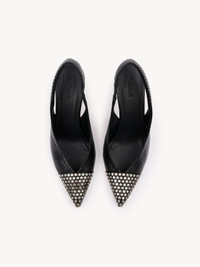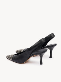 DESCRIPTION Crafted from perforated supple lambskin, these Alba slingback pumps feature a pointed toe finished with patinated silver-tone studs. The elasticated padded ankle strap ensures a comfortable fit. PRODUCT DETAILS Pump heel height: 3" (7.5 cm) Heel-to-toe drop: 3" (7.5 cm) Upper: lambskin Inner sole: lambskin Main lining: lambskin Sole: cowhide Heel: cowhide Fit true to size, European sizing - Slip-on To make this product, Chloe worked with Leather Working Group (LWG) certified leather manufacturers. LWG certifies tanneries based on their water and energy usage, management of chemicals, solid waste, and wastewater. Color: Black Item code: CH26S16HWL001