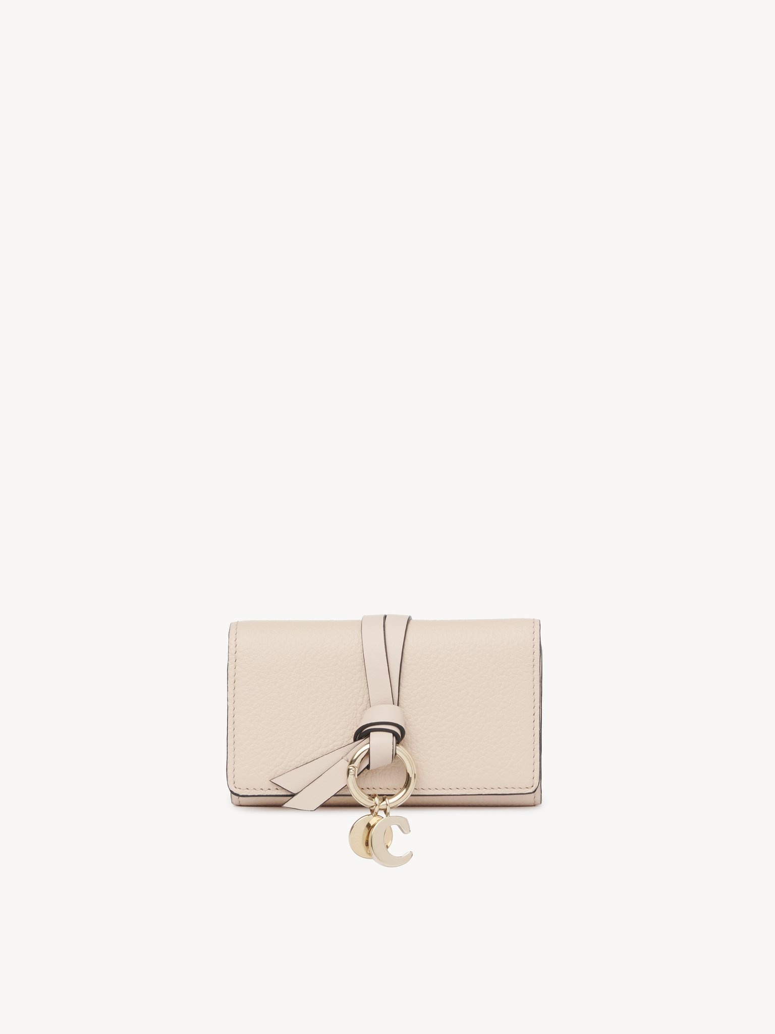 The Maison's iconic Alphabet line includes this key case in grained and shiny calfskin. A practical accessory, it features multiple keyrings and two card slots. The front is finished with a knotted link and Chloe-designed golden initial charms. This slim keyholder will slip easily into a small bag. PRODUCT DETAILS Key case in grained & shiny calfskin Main lining: 65% Polyester, 35% Cotton - 6 keyholders - 2 card slots - Snap button closure Comes with a dust bag - Width: 4.3" (11 cm) - Height: 3.1" (8 cm) - Depth: 0.8" (2 cm) This keyholder is made from leather with a very light finish. Keep away from water (rain). The keyholder may develop smooth or light halos. If the leather gets wet, dry it with a soft white cloth to absorb water. With use, the leather may become marked. To make this product, Chloe worked with Leather Working Group (LWG) certified leather manufacturers. LWG certifies tanneries based on their water and energy usage, management of chemicals, solid waste, and wastewater. Color: Cement Pink Item code: CH25SP950F576J5
