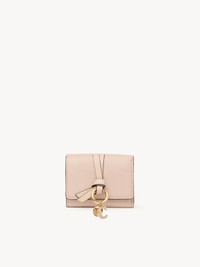 DESCRIPTION The Alphabet small tri-fold wallet is perfectly sized to hold the bare essentials. Crafted from grained and shiny calfskin, it opens to reveal a compact interior with a single bill compartment. A coin compartment with flap adorns the back. A gold metal loop attached to the knotted leather link brings striking hardware to this compact wallet for ladies. Add your initial charm for decorative, personalized detail. PRODUCT DETAILS Mini tri-fold wallet in grained & shiny calfskin - 1 coin pocket with snap closure - 1 flat bill compartment - 1 credit card pocket - Width: 3.7" (9.5 cm) - Height: 2.8" (7 cm) This small wallet is made from semi-aniline leather. The half-transparent finish imparts a robust nature to the product while preserving its natural character. Follow care instructions on the leaflet. Color: cement pink Item code: CHC21WP719F576J5 CARE INSTRUCTIONS In order to protect this article, we recommend that you: avoid rubbing against abrasive materials shield it from humidity, light and heat avoid contact with liquids and greasy substances (makeup, cream) store your product carefully in its dustcover when not in use avoid rubbing against color-contrasting clothes or materials. To remove a water stain, gently soak up liquid by dabbing it with a white cloth should a scratch occur on the leather, you can gently massage it with the same type of cloth for all other issues, please contact the Chloe after-sales service or a specialist. TRACEABILITY Better traceability is central to improving our materials as well as social and environmental practices. Dyeing: Italy Finishing: Italy Tanning: Italy