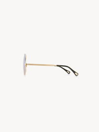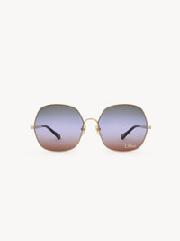 These Aly square sunglasses pair a lightweight graphic frame in shiny gold-tone metal with triple gradient lenses in a palette of green, blue and rust. The Chloe logo finishes the left lens. Drop-shaped openings at the temple tips make these sunglasses compatible with Chloe's eyewear jewelry. PRODUCT DETAILS Square sunglasses in gold metal & bio-based nylon - 100% UVA and UVB protection - Not prescription friendly - Chloe logo engraved on the temples - Filter category: 1 These sunglasses come with a case and lens cloth - Lens: 2.4" (60 mm) - Bridge: 0.7" (17 mm) - Temple: 5.5" (140 mm) - Gold metal frame - Gradient green, blue & rust lenses Item code: CHC25SEK0282844