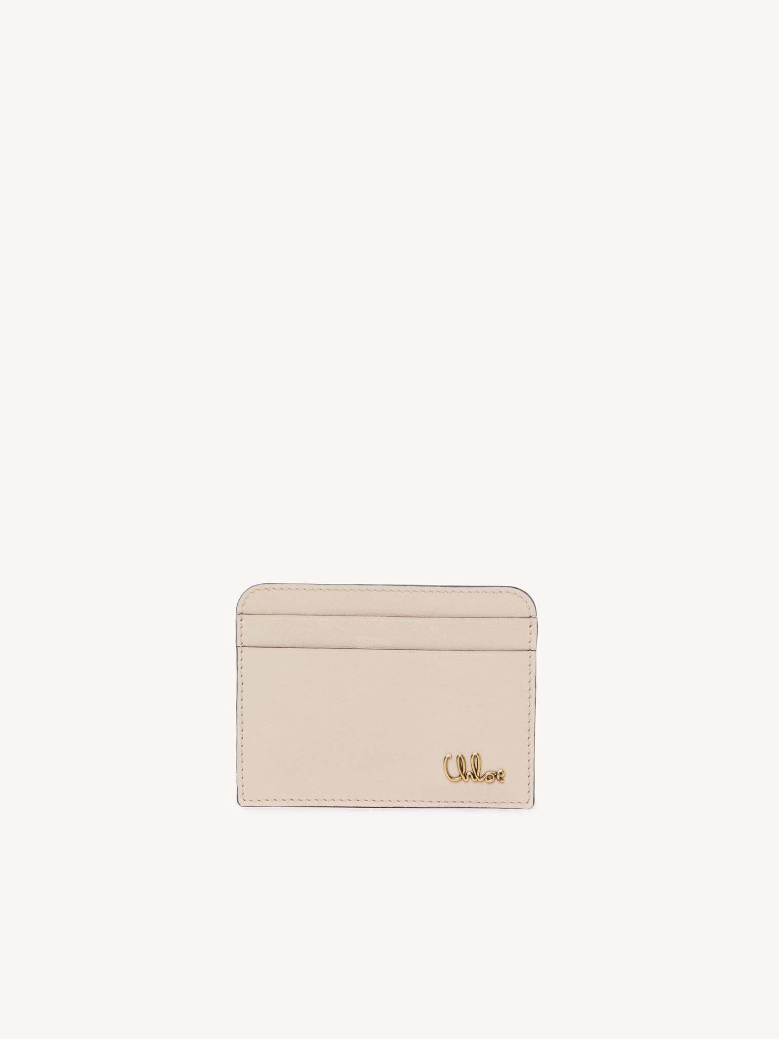 Crafted from shiny calfskin, the Chloe Iconic card holder combines a minimalist design with a metallic signature from the Maison's archives. This compact, pocket-sized accessory features a pocket and four card slots. PRODUCT DETAILS Card holder in shiny calfskin Main lining: Calfskin - 1 main pocket - 4 card slots Comes with a dust bag - Width: 4.1" (10.5 cm) - Height: 3.1" (8 cm) - Depth: 0.4" (1 cm) This card holder is made from natural leather with a very light finish. Keep away from water (rain). The card holder may develop smooth or light halos. If the leather gets wet, dry it with a soft white cloth to absorb water. With use, the leather may become marked. To make this product, Chloe worked with Leather Working Group (LWG) certified leather manufacturers. LWG certifies tanneries based on their water and energy usage, management of chemicals, solid waste, and wastewater. Color: Cement Pink Item code: CH25SP480O166J5