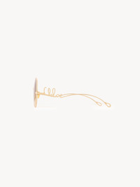 DESCRIPTION Inspired by the Maison's heritage, these small Chloe Iconic round sunglasses pair a lightweight frame in shiny light gold metal with gradient mustard lenses. The left temple is signed with a Chloe Iconic logo insert. Drop-shaped openings at the temple tips make these sunglasses compatible with Chloe's eyewear jewelry. PRODUCT DETAILS Round sunglasses in gold metal & bio-based nylon - Small shape - 100% UVA and UVB protection - Adjustable nose pads engraved with the Chloe logo - Prescription friendly - Chloe Iconic logo on the left temple - Filter category: 2 These sunglasses come with a case and lens cloth - Lens: 2.2" (56 mm) - Bridge: 0.7" (19 mm) - Temple: 5.5" (140 mm) - Gold metal frame - Gradient mustard lenses Item code: CH26SEK0372826 CARE INSTRUCTIONS These sunglasses/eyeglasses are made with carefully selected materials. Please handle with care for a longer product life.- Store in the case provided.- Clean with a soft, dry cloth.- If necessary, use a damp cloth and mild detergent. Do not use solvents or aggressive detergents which may alter the features of the sunglasses/eyewear