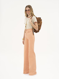 Crew-neck T-shirt in cotton jersey with a chest pocket, featuring a Chloe logo rubber print and contrast trims at the neckline and sleeves. PRODUCT DETAILS Crew-neck T-shirt outer shell: 100% Cotton Fit: straight - The model is 5'10" (178 cm) and wears a prototype in size S - Logo T-shirt - Slips on Care: gentle wash 90°F (30°C) Color: Blossom Beige Item code: CH25UJH04187286