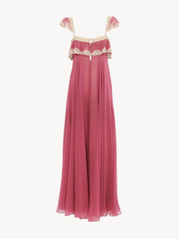 FLUID LONG DRESS IN SILK MOUSSELINE & LACE