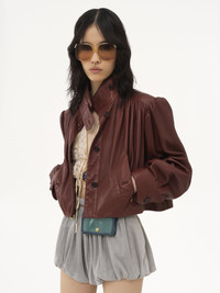 GATHERED BOULE JACKET IN LEATHER