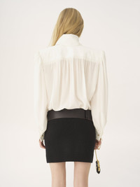 GATHERED SCARF-TIE BLOUSE IN CRÊPE DE CHINE & LACE