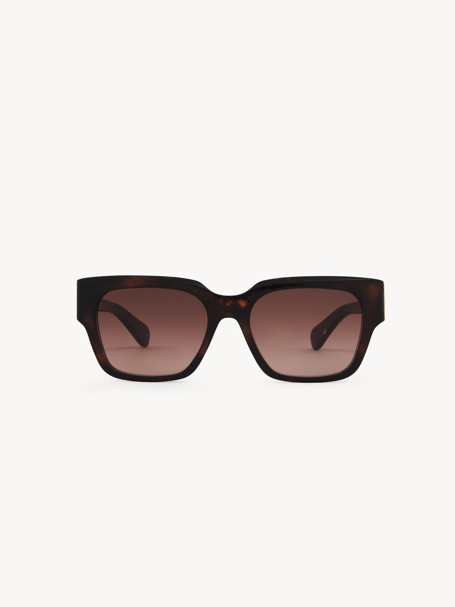 Gayia rectangular sunglasses made of lower-impact pre-consumer recycled acetate and bio-based nylon. The shiny Dark Havana frame is paired with gradient dark wine lenses. An engraved text on the inside of the right temple indicates the style's unique composition. PRODUCT DETAILS Rectangular sunglasses in recycled acetate & bio-based nylon - 100% UVA and UVB protection - Not prescription friendly - Chloe logo engraved on the left temple - Filter category: 2 These sunglasses come with a case and lens cloth - Lens: 2.1" (54 mm) - Bridge: 0.7" (18 mm) - Temple: 5.7" (145 mm) These sunglasses are made with carefully selected materials. Please handle with care for a longer product life. - Store in the case provided. - Clean with a soft, dry cloth. - If necessary, use a damp cloth and mild detergent. Do not use solvents or aggressive detergents which may alter the features of the sunglasses. - Shiny Dark Havana recycled acetate frame - Gradient dark wine lenses Item code: CHC23WEK0190215