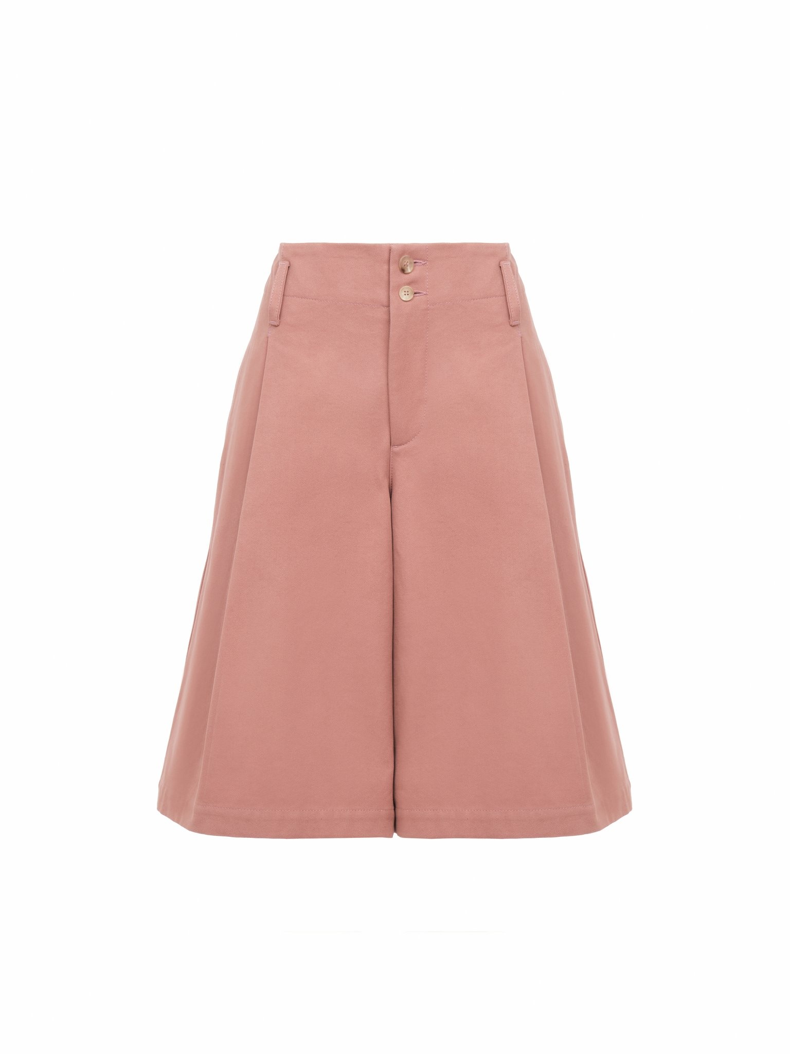 High-rise, wide-leg bermuda shorts in garment-dyed organic cotton canvas, featuring front pleats and engraved horn buttons. PRODUCT DETAILS Bermuda shorts outer shell: 100% Cotton Buttons: 100% Water buffalo horn Fit: high waist, wide leg - The model is 5'10" (178 cm) and wears a prototype in size 36 - Tailored Chloe shorts - Engraved horn buttons at front & back pockets - Front zipper - Side pockets - Piped back pockets - Belt loops An organic cotton farming system sustains the health of soils, ecosystems and people by eliminating the use of toxic and persistent organic pollutants and increasing water conservation. Color: Wild Pink Item code: CH25ASH083656L7