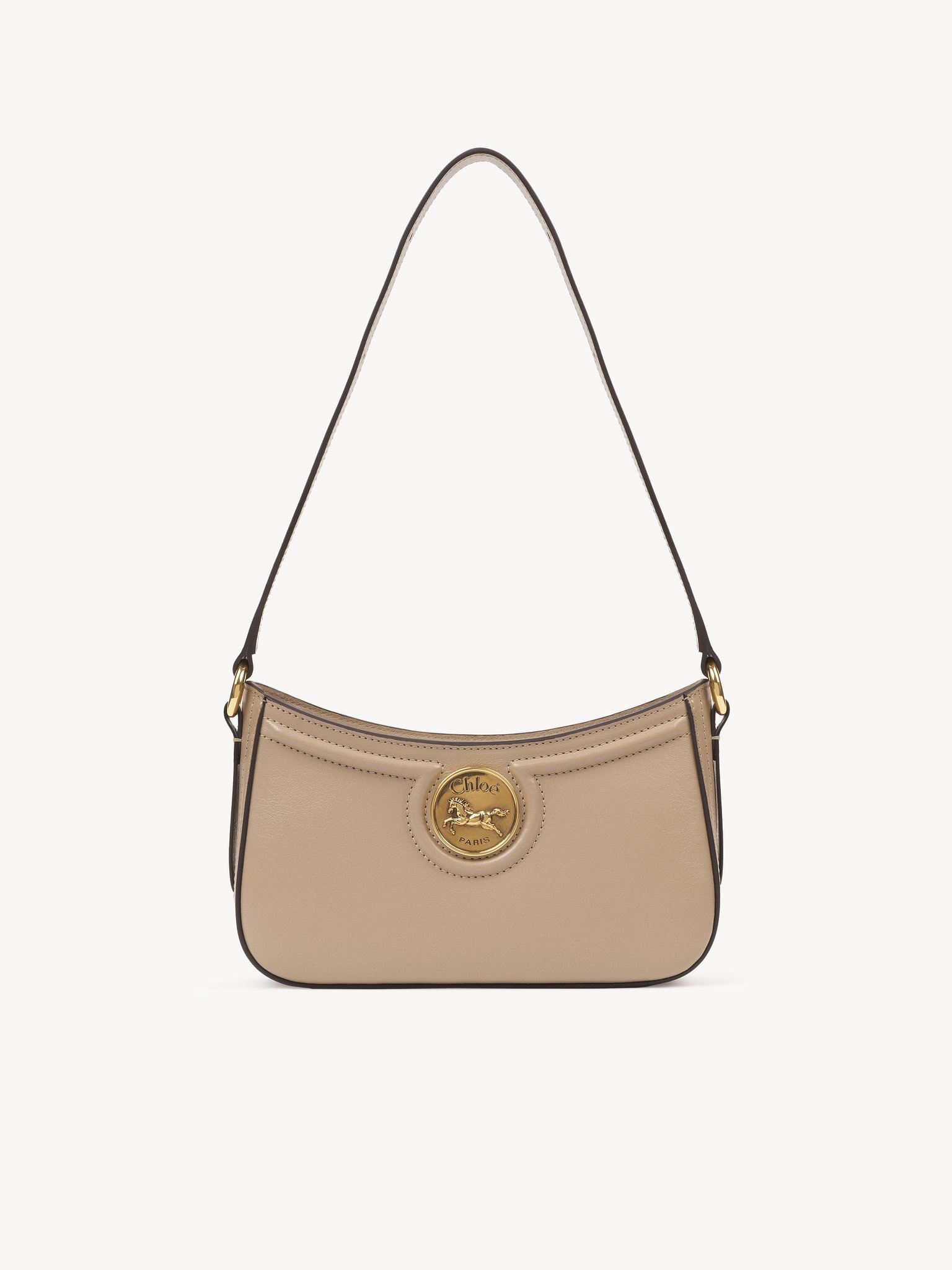 This Horse Medal shoulder bag is crafted from grained buffalo leather. The structured silhouette pairs graphic lines with the Maison's iconic gold-tone medal featuring an embossed image of a galloping horse and a Chloe Paris logo engraving. PRODUCT DETAILS Shoulder bag in grained buffalo leather Main material: Buffalo leather Main lining: 55% Cotton, 45% Linen Carry: Shoulder - 1 main compartment (fits a cell phone) - 2 card slots - Zip closure Comes with a dust bag - Width: 8.7" (22 cm) - Height: 5.1" (13 cm) - Depth: 2" (5 cm) Strap drop: 10.6" (27 cm) To make this product, Chloe worked with Leather Working Group (LWG) certified leather manufacturers. LWG certifies tanneries based on their water and energy usage, management of chemicals, solid waste, and wastewater. Color: Boyish Brown Item code: CH25AP989O3720E