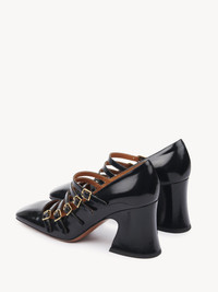 Crafted from shiny calfskin, these Janis pumps are set on a flared block heel. A subtle square toe shape combines with multiple adjustable straps signed by gold-tone buckles engraved with the Chloe logo. PRODUCT DETAILS Pump heel height: 3.1" (8 cm) Heel-to-toe drop: 3.1" (8 cm) Upper: calfskin Inner sole: lambskin Main lining: lambskin Sole: cowhide Heel: calfskin Fit true to size, European sizing - Buckle fastening To make this product, Chloe worked with Leather Working Group (LWG) certified leather manufacturers. LWG certifies tanneries based on their water and energy usage, management of chemicals, solid waste, and wastewater. Color: Black Item code: CHC25A11COL001