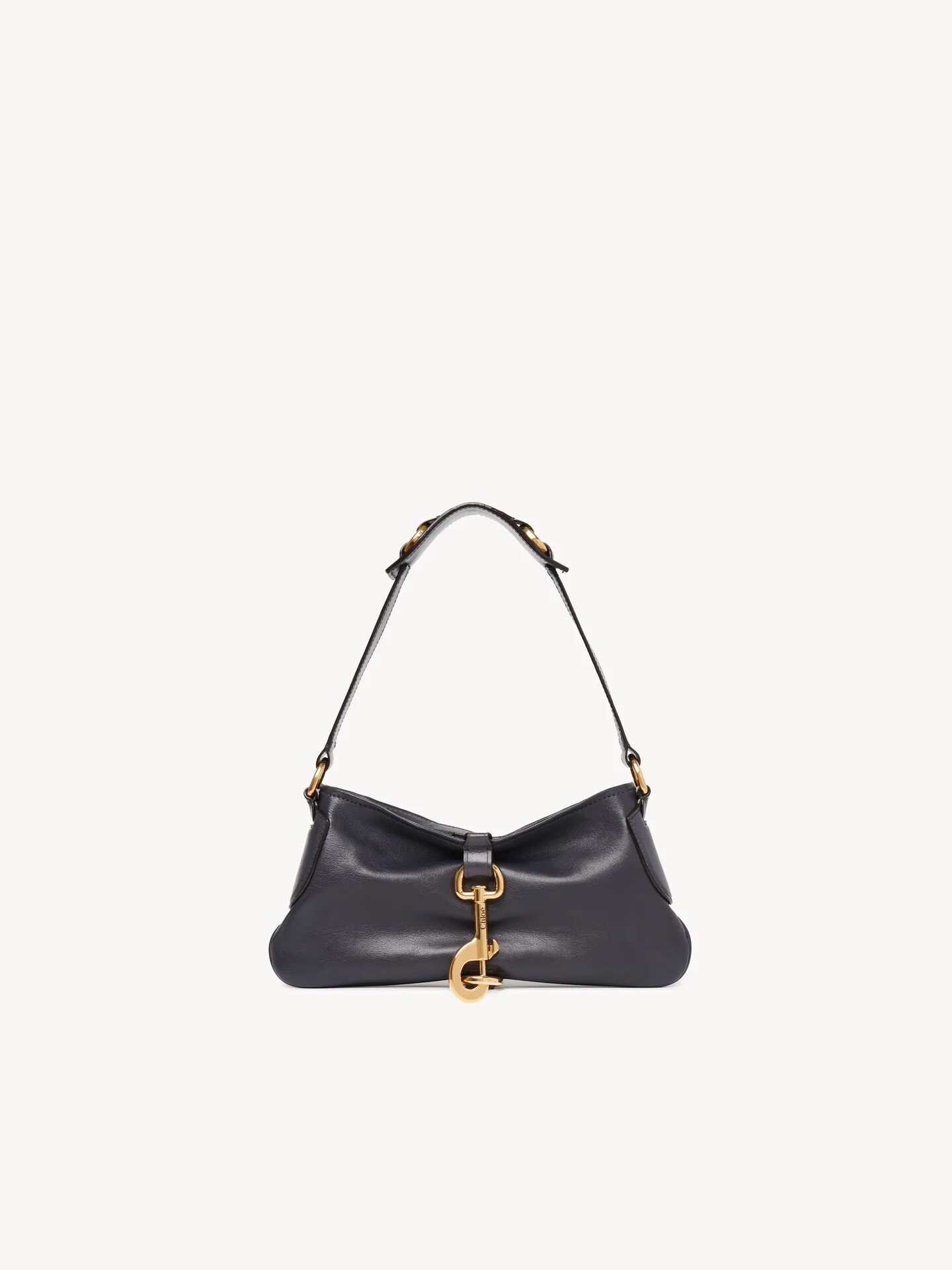 Crafted from smooth and natural calfskin, the Kerala 25 shoulder bag is inspired by the Maison's heritage. The ideal daily companion, it features a slouchy retro silhouette embellished with the line's oversized metallic hook. This day bag comes with a short strap for shoulder and hand carry. PRODUCT DETAILS Kerala 25 shoulder bag in smooth & natural calfskin Main material: Cowhide Secondary material: Calfskin Main lining: Calfskin Carry: Shoulder & hand - 1 main compartment - 1 inside flat pocket - Zip closure Comes with a dust bag - Width: 11.8" (30 cm) - Height: 5.9" (15 cm) - Depth: 1.6" (4 cm) - Handle drop: 8.3" (21 cm) This shoulder bag is made from natural leather with a very light and transparent finish. Grain placement over the bag has been selected randomly by designers. Keep away from water (rain). The bag may develop smooth or light halos. If the leather gets wet, dry it with a soft white cloth to absorb water. With use, the leather may become marked and shiny. For large and medium size bags, the handle will arrive inside the bag. Do not throw it away. Color: Black Navy Item code: CHC25SS743O4944C